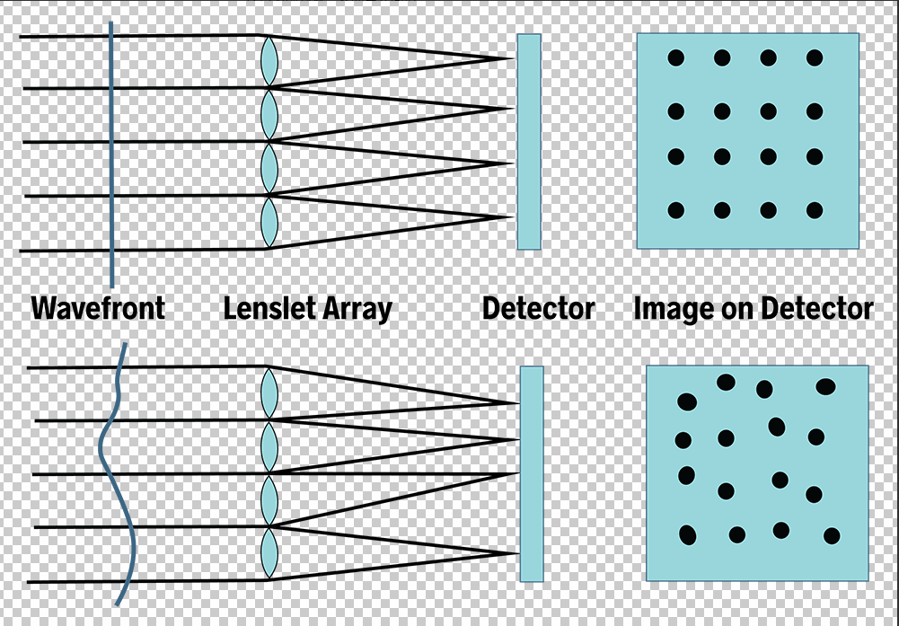 ○ Principle: Wavefront is segmented and imaged using a microlens array. The wavefront slope is calculated using the offset of the light spot relative to a reference position, thereby reconstructing the surface shape.
